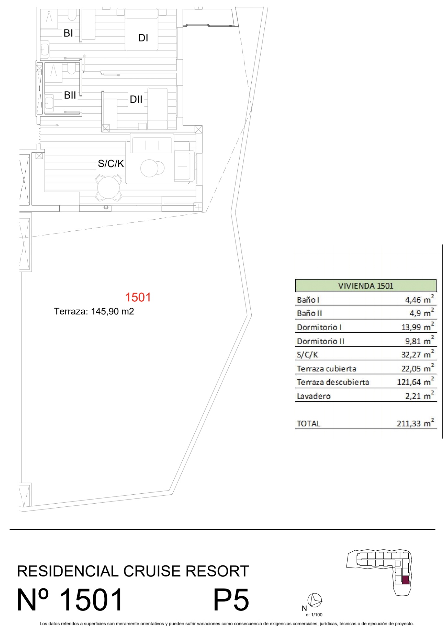 Piso de obra nueva en la planta 5 de 2 dormitorios, 2 baños con superficie 211 m² construidos. La vivienda cuenta con las siguientes comodidades: Antena TV, Ascensor, Parking privado, Trastero, Terraza. El piso dispone de de 145.9 m².