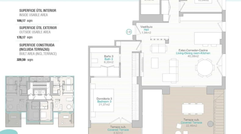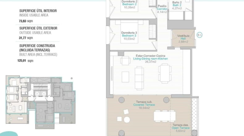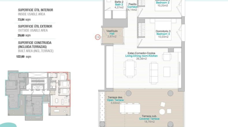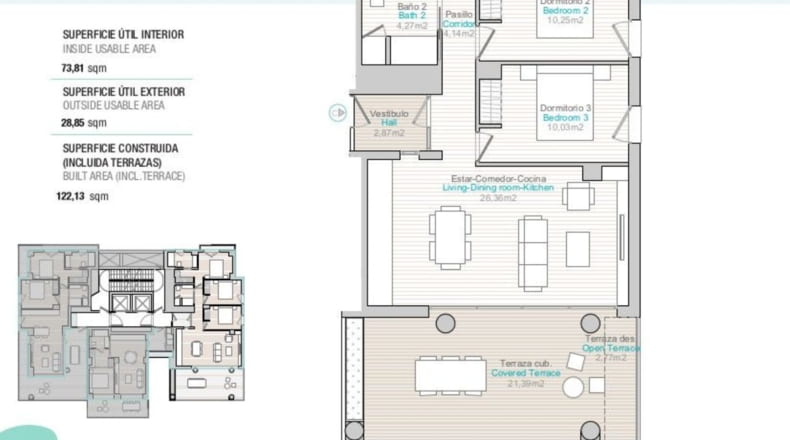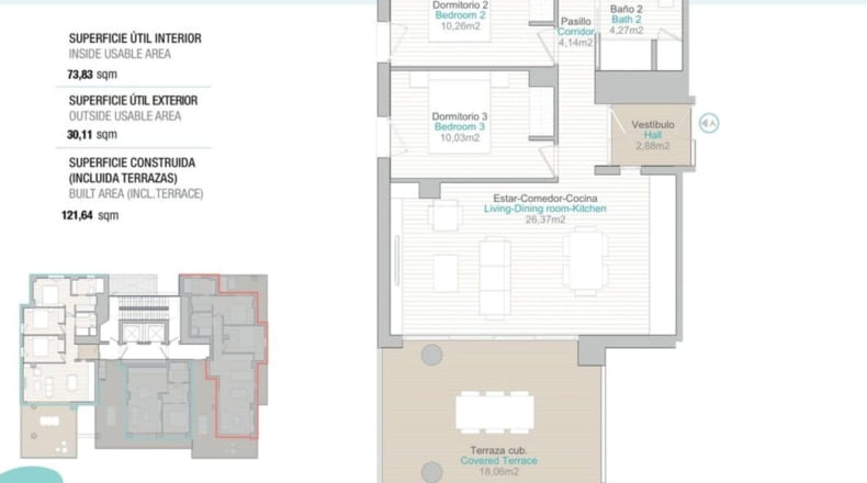 Piso de obra nueva de 3 dormitorios, 2 baños con superficie 118 m² construidos. La vivienda cuenta con las siguientes comodidades: Ascensor, Gimnasio. El piso dispone de una terraza.