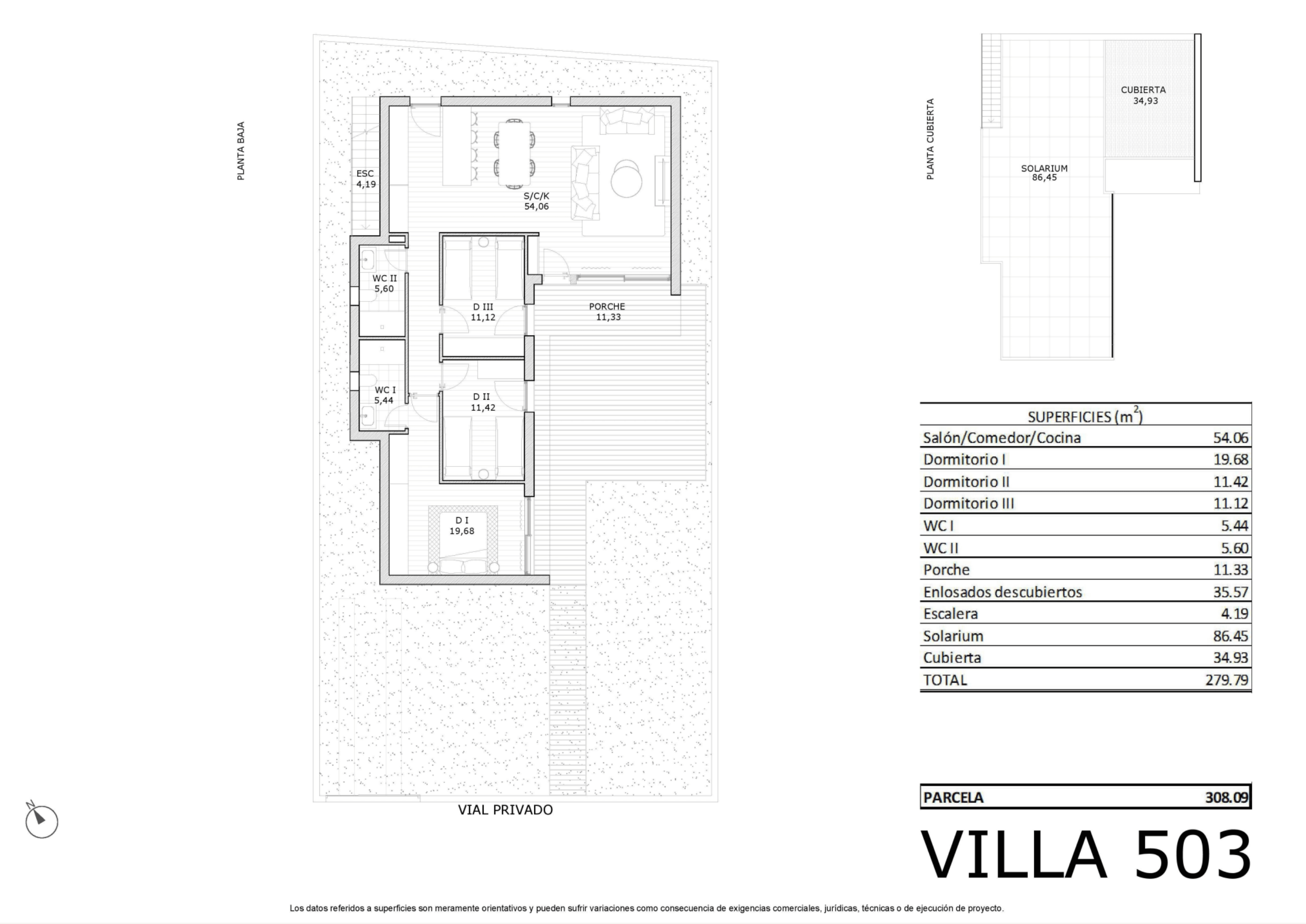 Casa de obra nueva de 1 plantas de 3 dormitorios, 2 baños con superficie 107 m² construidos. La villa cuenta con parcela de 308.09 m²